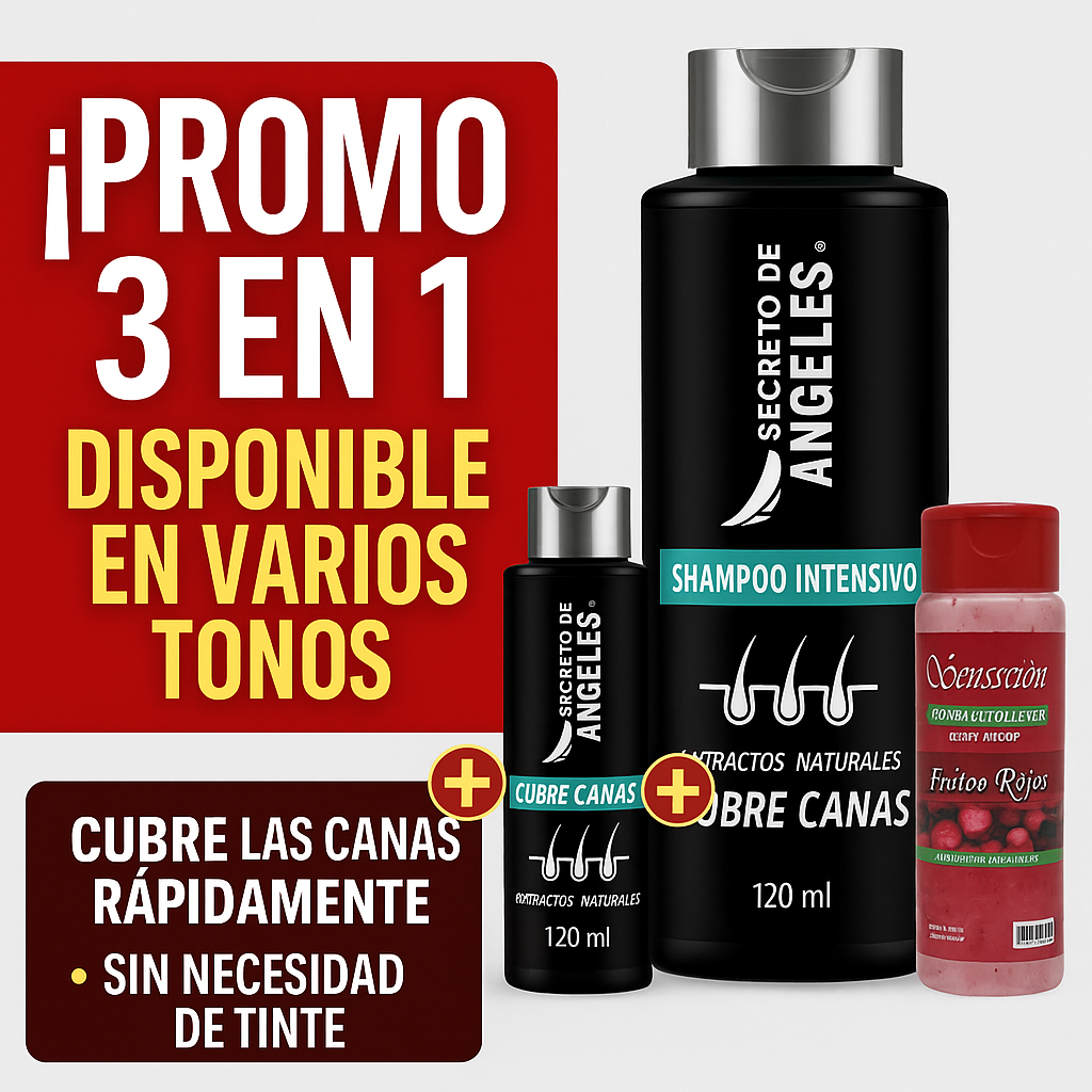 🧴✨ ¡DILE ADIÓS A LAS CANAS CON ESTILO NATURAL! 🔥 OFERTA ESPECIAL: SHAMPOO CUBRE CANAS X 1 UND + 2 OBSEQUIOS 💥